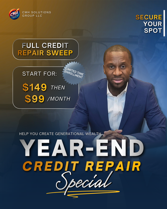 CMH Solutions Group is excited to announce our limited Year-End Credit Repair Special starting Friday, December 12.